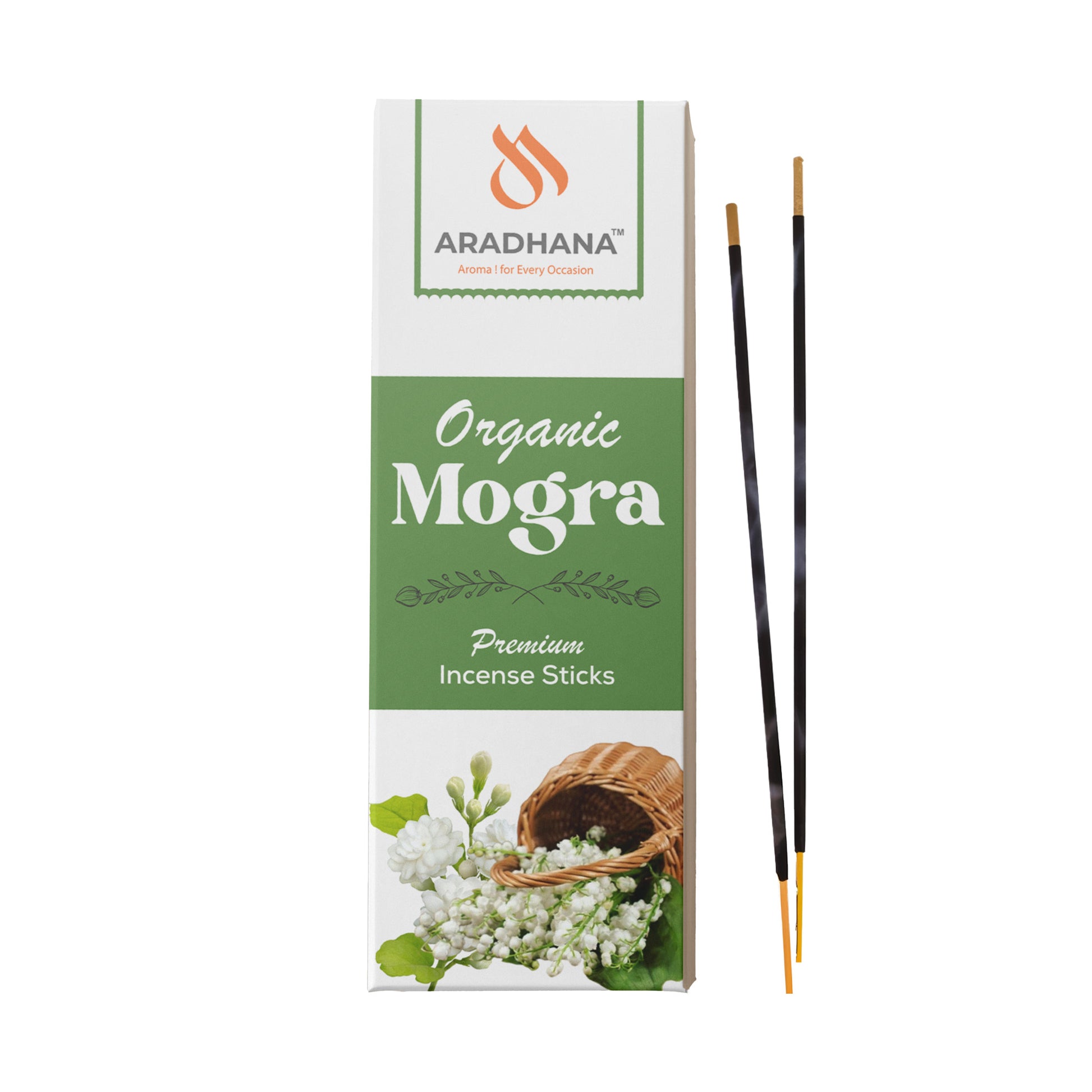 Aradhana Organic Mogra Agarbatti is a naturally blended incense stick enriched with the fresh and floral fragrance of mogra (jasmine). Crafted using eco-friendly, chemical-free ingredients, it delivers a smooth, clean burn with a calming aroma that lingers. Perfect for daily prayers, meditation, or simply refreshing your space, this agarbatti combines the purity of tradition with the beauty of natural mogra scent. A safe and soothing choice for creating a peaceful and spiritual atmosphere at home.